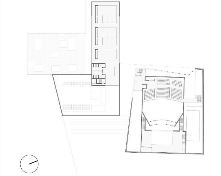 Nuestra primera inquietud era crear un auditorio que se relacionara con el entorno inmediato y la ciudad, y no crear un objeto aislado sin ningun tipo de conexión con Colonia. Para nosotros lo más evidente era separarse de barrera que es la estación y abrirse lo menos posible a ella, y en cambio, buscar relacionar el auditorio con el paseo fluvial y las calles y edificios de la ciudad que se extienden al norte de la parcela.