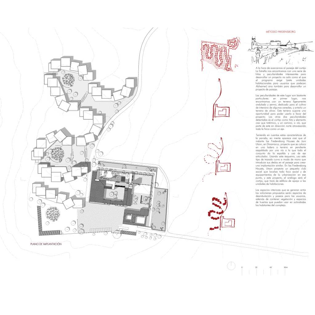 A la hora de acercarnos al paisaje del cortijo La Estrella nos encontramos con una serie de hitos y peculiaridades interesantes para desarrollar un proyecto no solo como el que el programa exige (siete unidades habitacionales para usuarios que padecen Alzheimer) sino también para desarrollar un proyecto de paisaje.